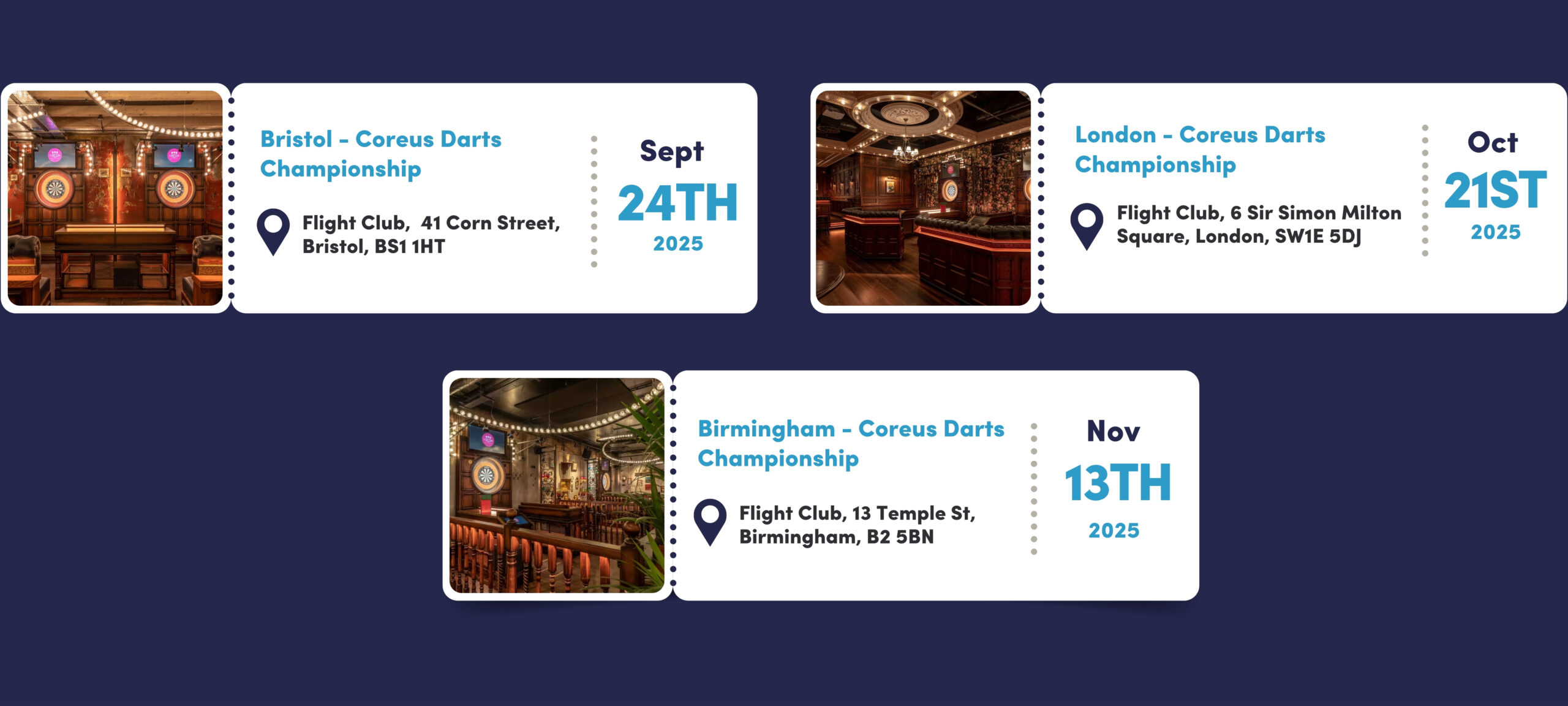 We’re excited to announce the Coreus Darts Championship 2025, in aid of The Coreus Foundation, taking place across Bristol, London, and Birmingham!